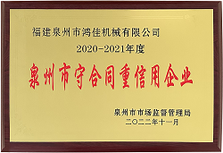 喜訊!鴻佳機(jī)械同時榮獲泉州市、南安市2020-2021年度“守合同重信用企業(yè)”榮譽(yù)稱號